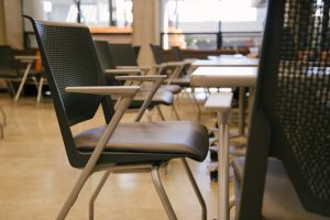 - Grey chairs in the Burnaby campus library