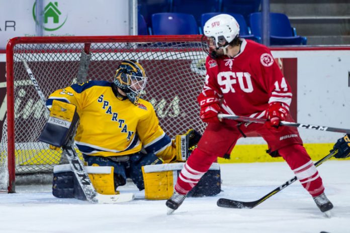 Before puck drop on Saturday night, the Clan celebrated graduating seniors Ryan Sandrin (G), Darnel St. Pierre (D), Jaret Babych (F), Graham Smerek (F), Brendan Lamont (F) and captain Mathew Berry-Lamontagna (D) for their contributions to the SFU ice hockey team over the past four years. Coach Mark Coletta faces a tall recruiting task over the off-season to attempt to replace such important components of the Clan.