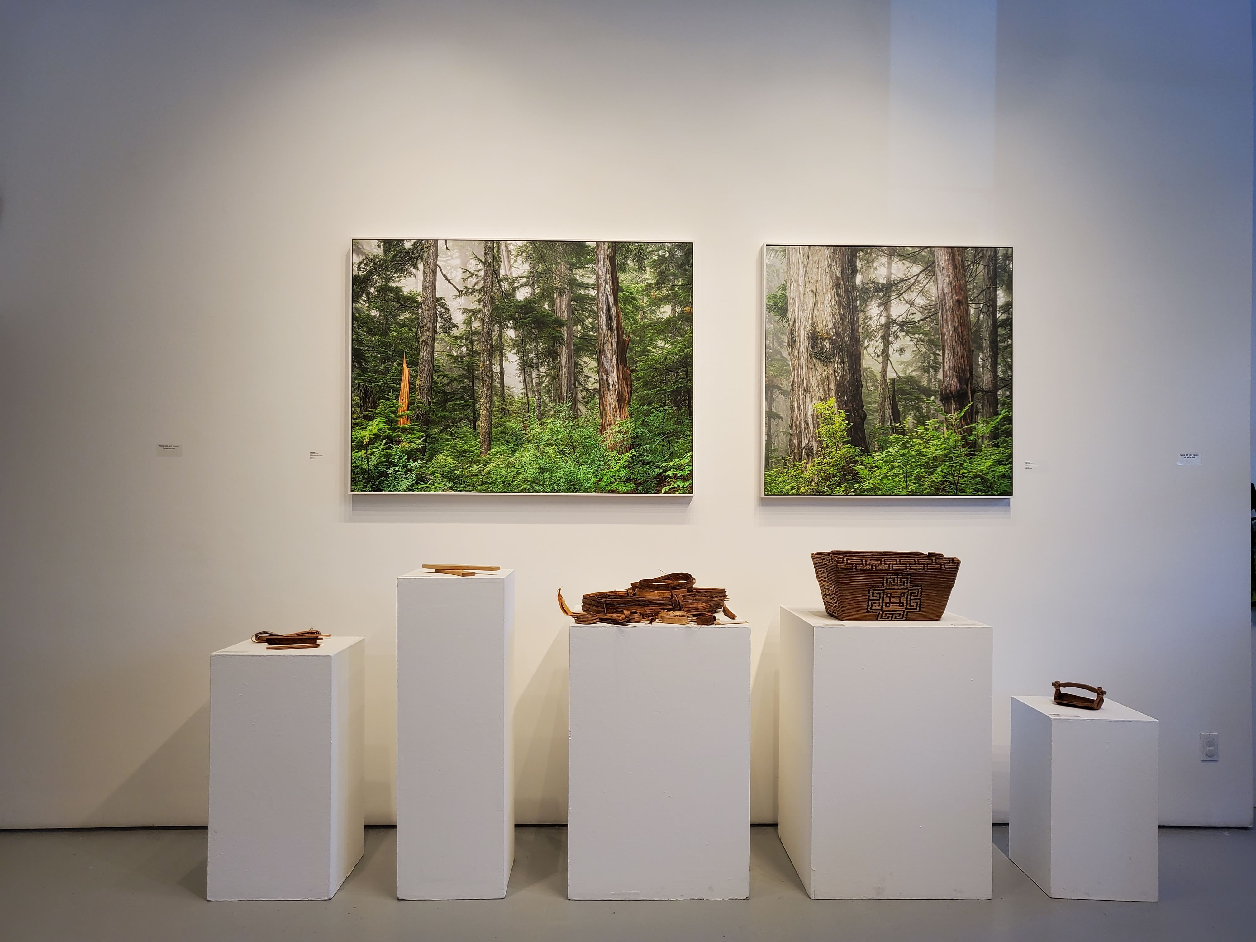 Stalkaya – Ḵ’elhmáy̓/X̱ápay̓ay is an exhibition based on the Skwxwu7mesh (Squamish) people’s relationship with cedar trees in old growth forests. The exhibit’s title refers to the traditional names for the Dakota Bear Sanctuary, yellow cedar, and red cedar, respectively.