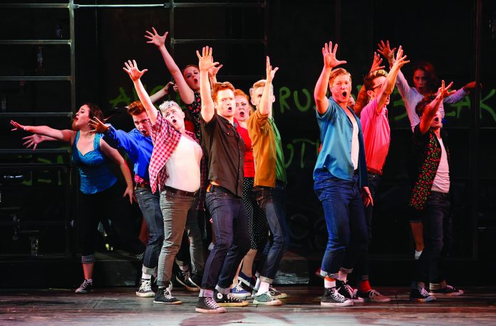 While this story of rival New York City street gangs is a bit exaggerated, its themes are eternally relevant. I loved the way director Sarah Rodgers used an innocent little girl to highlight the importance of love and acceptance. The girl appears to open the show with a short song, returns during the tragic fight scene, and is back at the end to spray-paint the word “Love” on the back wall.